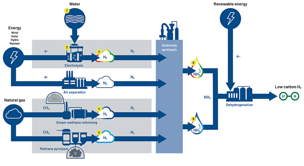 Hydrogen converted to ammonia (NH3) has been used for decades in a wide range of industrial processes. With global efforts to decarbonize the economy, ammonia is now becoming more relevant as a transport vector for hydrogen.
