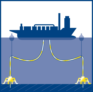 FPSOs (Floating Production Storage and Offloading vessels) are used to pump, store and load crude oil and natural gas. The technical equipment largely corresponds to that of offshore drilling and production platforms. FPSO ships frequently represent a more flexible and cost-efficient alternative to conventional platform designs.