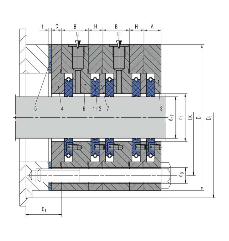 • Multi-part seal rings, radially cut on process side, overlapped mortised with gas tight joints on atmosphere side (adjusting)
