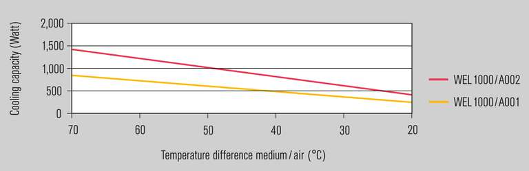 Cooling capacity: Values based on moved air min. 0.7 m/s and barrier fluid water.