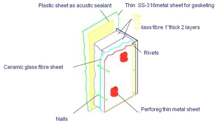 Each panel is made of different material layers, stiffened by special diamond shape bends in the metal sheet, put together by nails and rivets, the different material layers isolate noise and heat. For the windows special template glass is used and sealed by elastomeric gaskets.