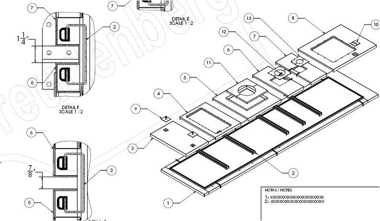 Each panel has specially shaped edges where an elastomeric shaped static seal (packing) is fixed.
